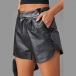 Vintage Mid-rise Side Pockets Artificial Leather PU Shorts