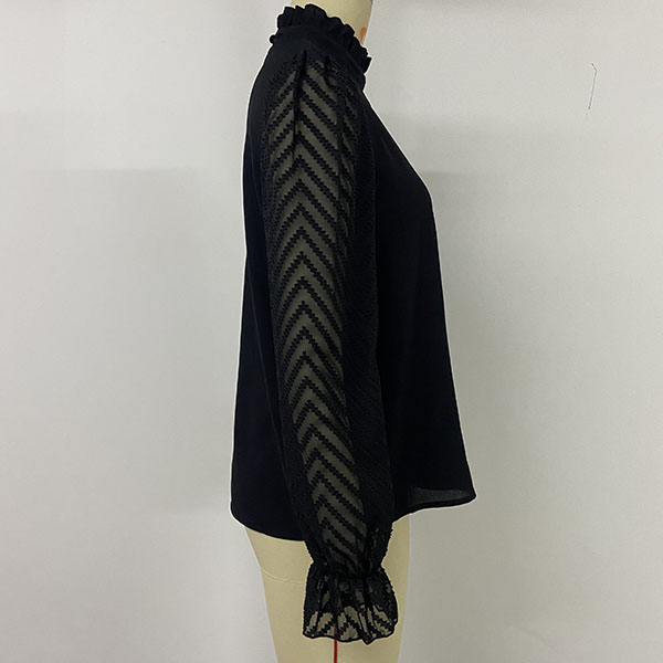 Look at this vintage shirt. The gauze spliced detailing along the long sleeve adds a delicate and intricate element to the shirt, creating a soft and romantic contrast with the structured design. The side button design adds a modern and edgy touch to the shirt. Pair it with tailored pants or a skirt for a professional and polished look, or style it with jeans and boots for a more casual and trendy ensemble.