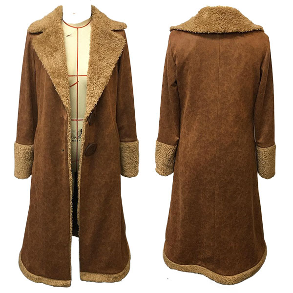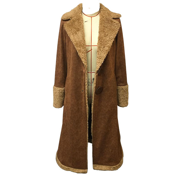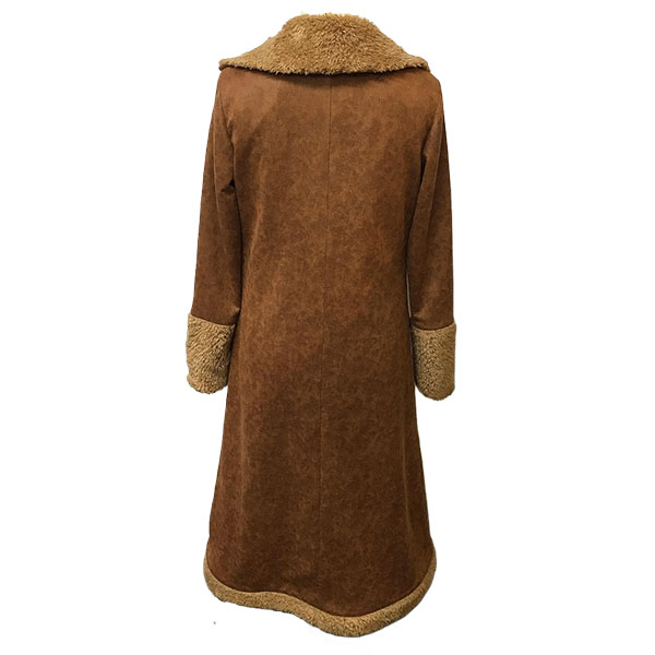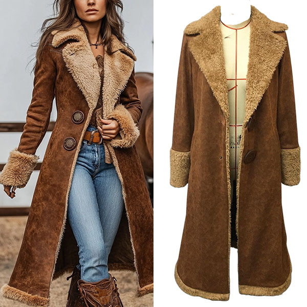 Vintage Notch Lapel Long Sleeve Plushed Lined Suede Longline Coat