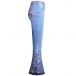 Vintage Old-washed Floral Embroidered Wide-leg Denim Jeans