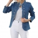 This jacket features an old-washed denim material that gives it a vintage and worn-in look. The frayed edges add a touch of edginess, while the stand collar and button closure create a classic and timeless silhouette. The jacket is perfect for layering over a t-shirt or sweater in the fall or spring, or for wearing as a statement piece in the summer.