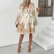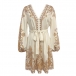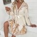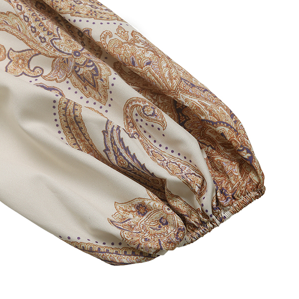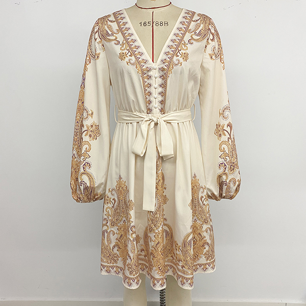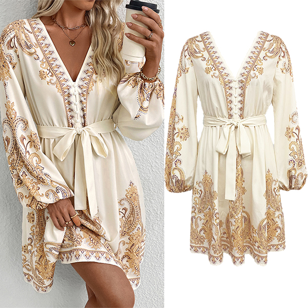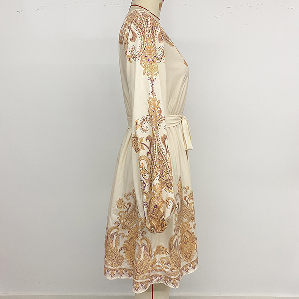 Vintage Paisley Printed V-neck Long Sleeve Self-tie Dress
