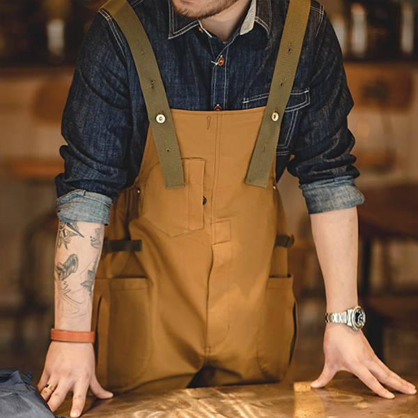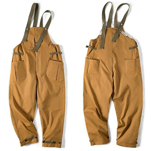 Vintage Patch Pockets Loose Cargo Suspender Pants for Men