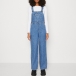 Vintage Patch Pockets Straight-cut Denim Suspender Jumpsuit
