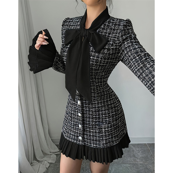 Look at this dress~ Traditional plaid patterning evokes nostalgic appeal and preppy sophistication, while adorable bowknot detailing adds a sweet, romantic accent. The flattering crewneck and trumpet long sleeves create a graceful, ladylike silhouette that's both modest and refined. A pleated hemline brings movement and dimensional texture, beautifully complementing the A-line cut that gently skims your figure for a universally flattering fit. Wanna have one?