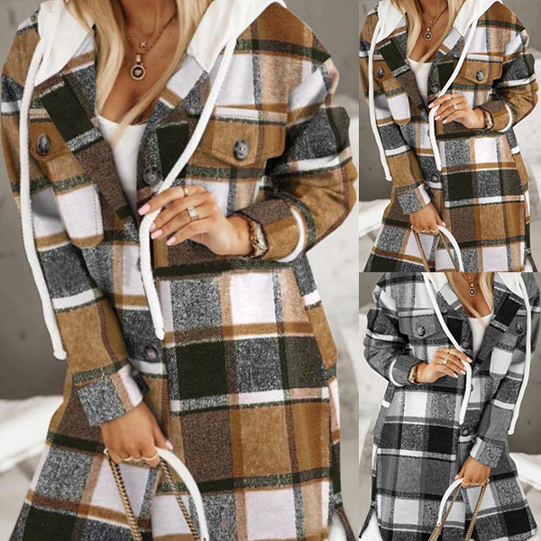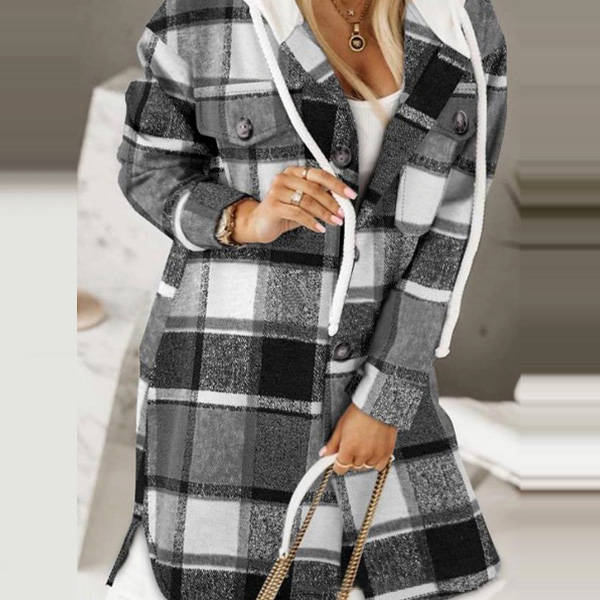 Crafted with high-quality materials, this plaid jacket features a comfortable drawstring hood and long sleeves to keep you warm during chilly days. The duffle-style design adds a touch of sophistication, making it perfect for both casual and semi-formal occasions.