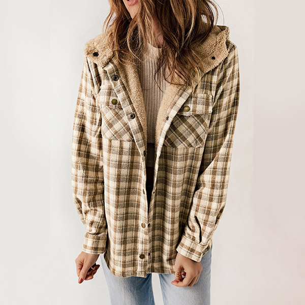 This jacket features classic plaid patter, hooded, long sleeve and plush lining, which adds a luxurious and cozy feel. Wanna have a try?