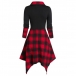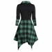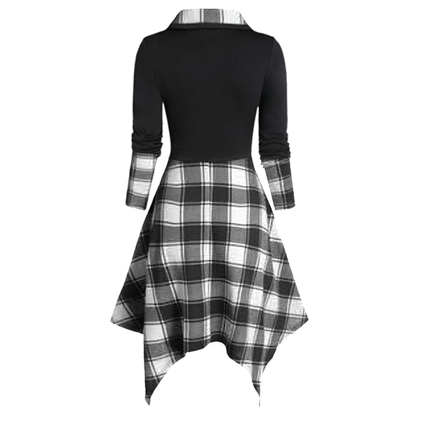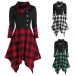 Vintage Plaid Stand Collar Long Sleeve Buttoned Irregular Hemline Dress