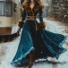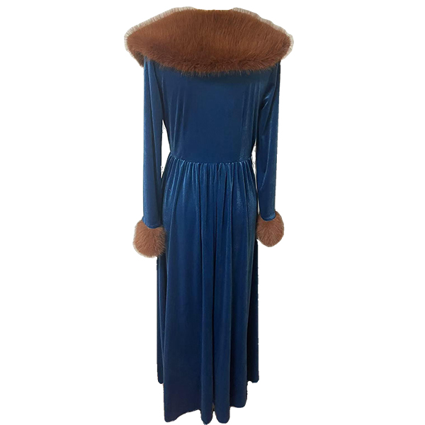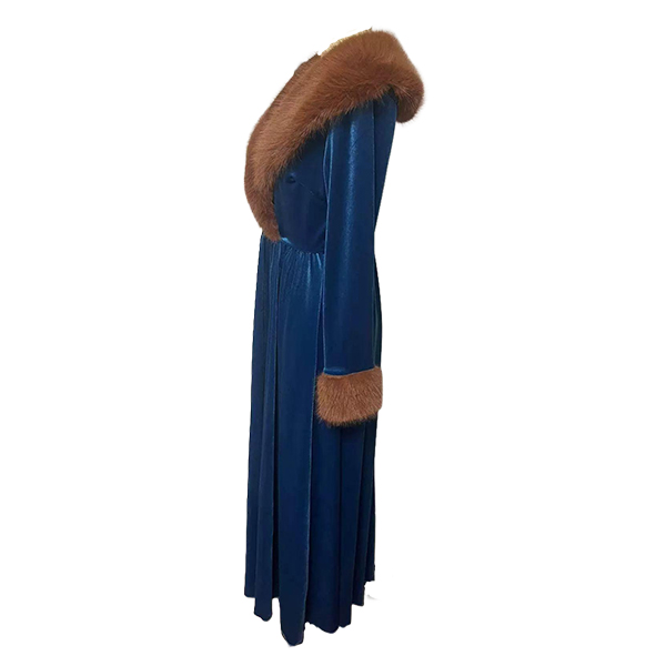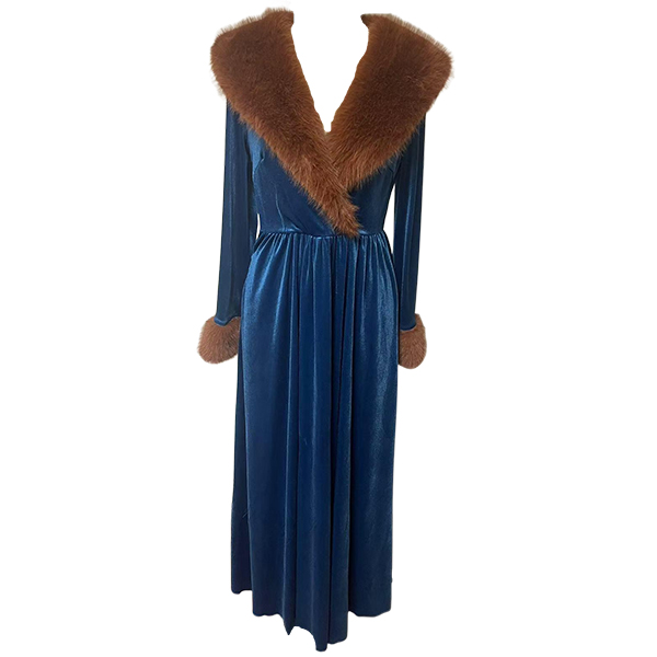 Vintage Plush Spliced Lapel Long Sleeve Maxi Velvet Dress