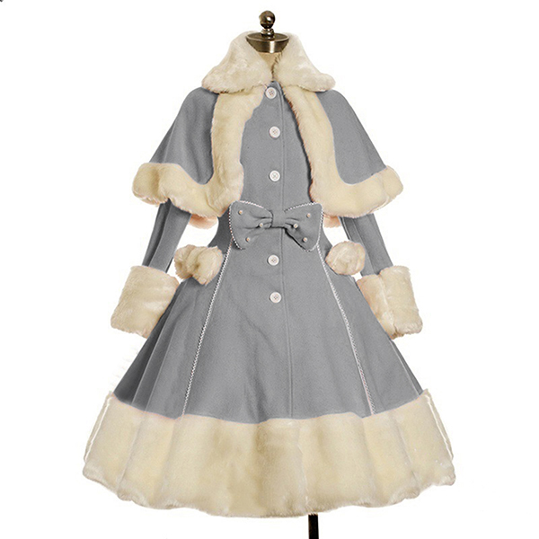 Vintage Plush Spliced Three-piece Set Consist of Caple, Dress and Bowknot