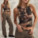 Look at this crop top! The print is unique and eye-catching, and the tank top is made of a comfortable, lightweight material. The top is easy to style and can be dressed up or down.