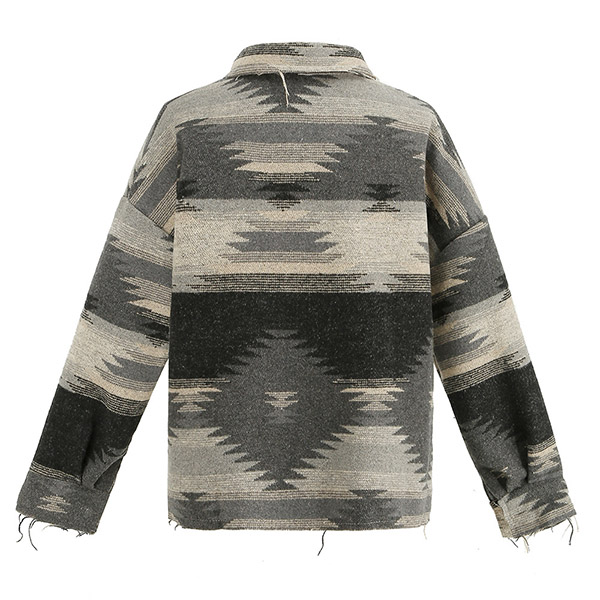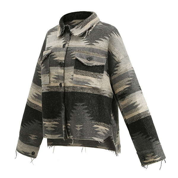 Vintage Printed Duffle Jacket with High-low Frayed Hemline