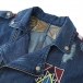 Vintage Printed Notch Lapel Long Sleeve Slant Zipper Old-washed Denim Jacket