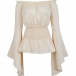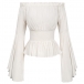 This shirt is a romantic and feminine piece that exudes vintage charm and elegance. The off-the-shoulder neckline with ruffle details enhances the romantic and vintage-inspired look. And the smocked waist creates a flattering and cinched silhouette. It is a timeless and elegant addition to your wardrobe that will make you feel effortlessly chic and feminine for any occasion.