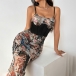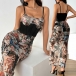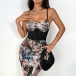 Vintage Sexy Printed V-neck Corset Style Bodycon Dress