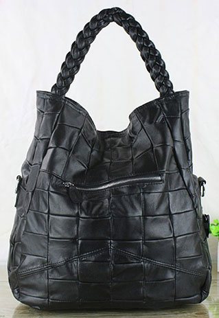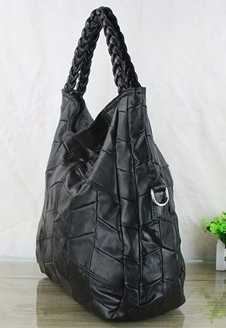 Vintage Solid Color Black Quilted Woven Tote Handbag Shoulder Bag