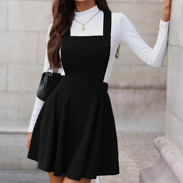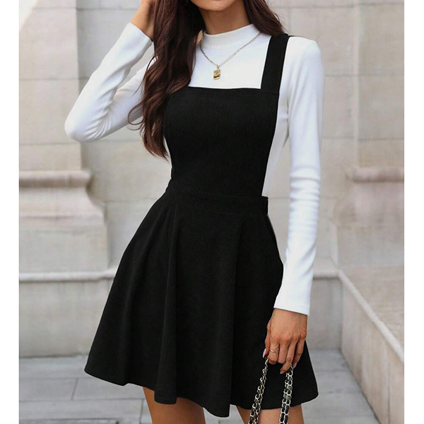This charming dress features classic suspender styling with comfortable elastic waist and rich corduroy texture for timeless vintage sophistication. The suspender design brings playful charm whilst the corduroy fabric adds luxurious texture and authentic retro appeal. Wanna have a try?