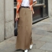 Vintage Solid Color High-rise Straight-cut Duffle Skirt