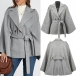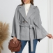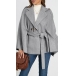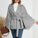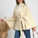 Vintage Solid Color Notch Lapel Double-breasted Batwing Sleeve Self-tie Duffle Cape-Jacket