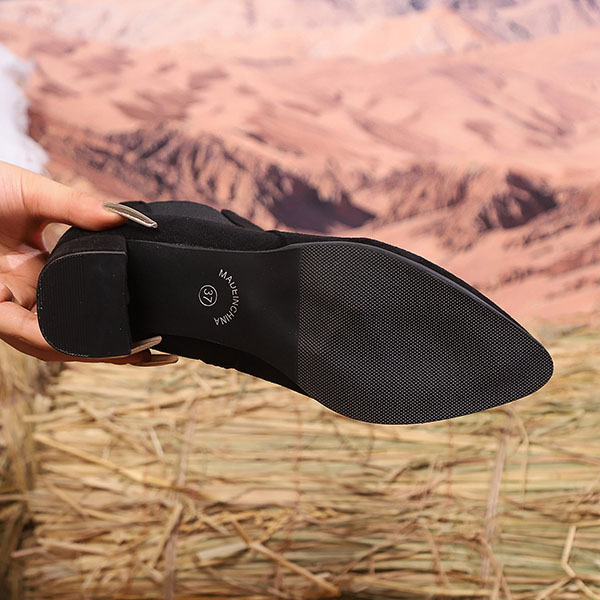 Vintage Solid Color Side Zipper Block Heel Ankle Boots