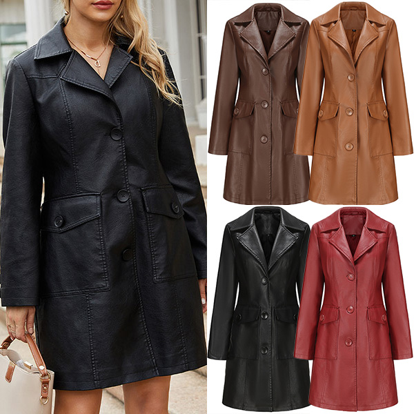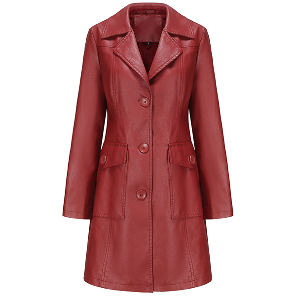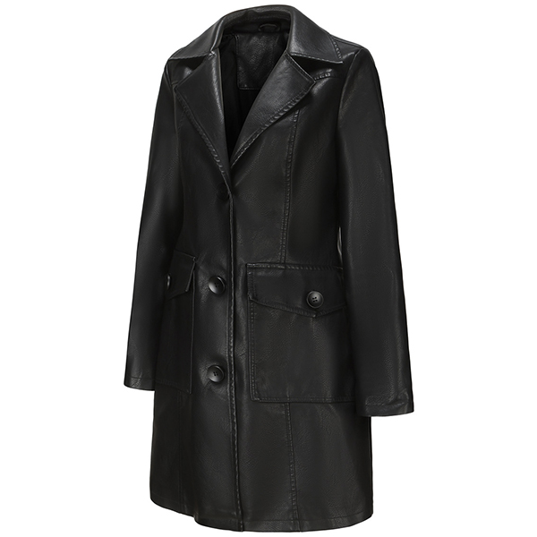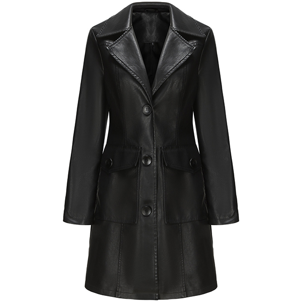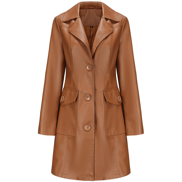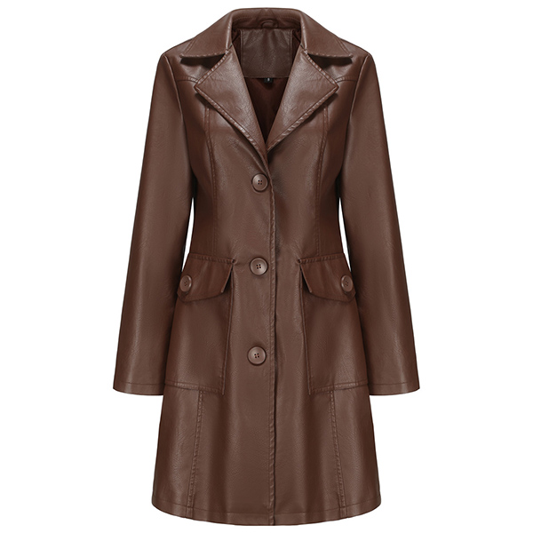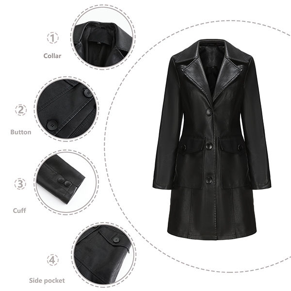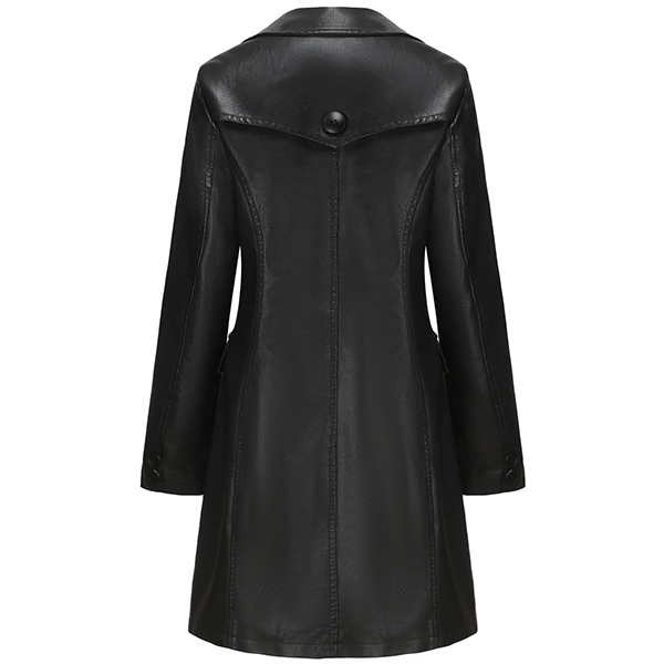 Vintage Solid Color Stand Collar Notch Lapel Long Sleeve Artificial Leather PU Jacket