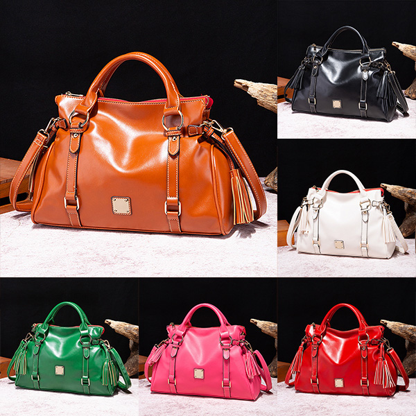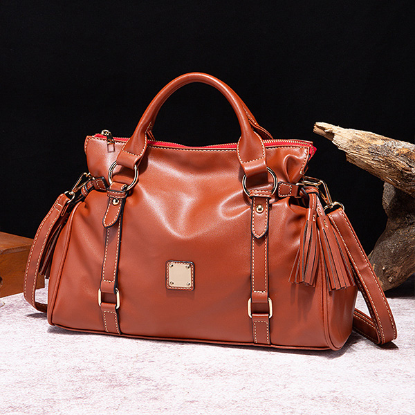 Vintage Solid Color Tassel Shoulder Bag/Tote Bag