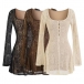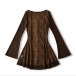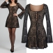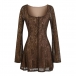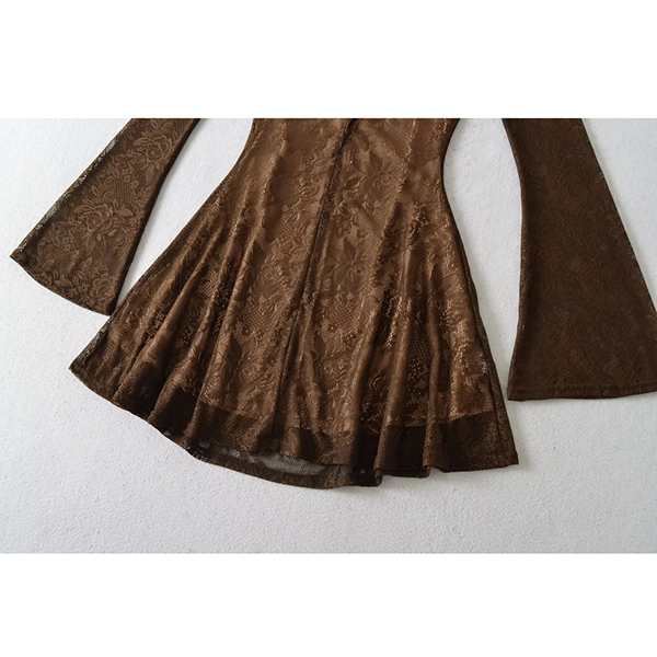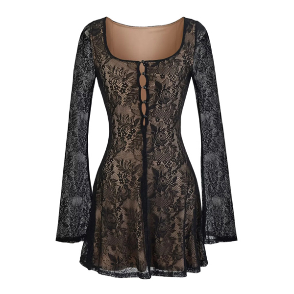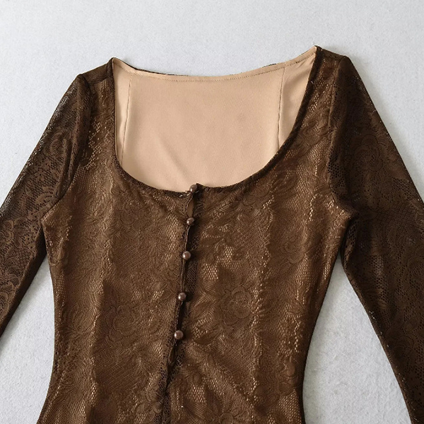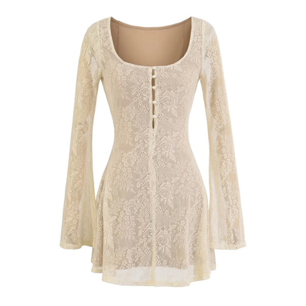 Vintage Square Neck Front Button Trumpet Long Sleeve Lace Dress