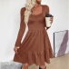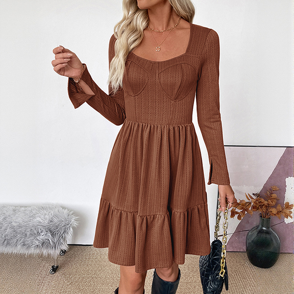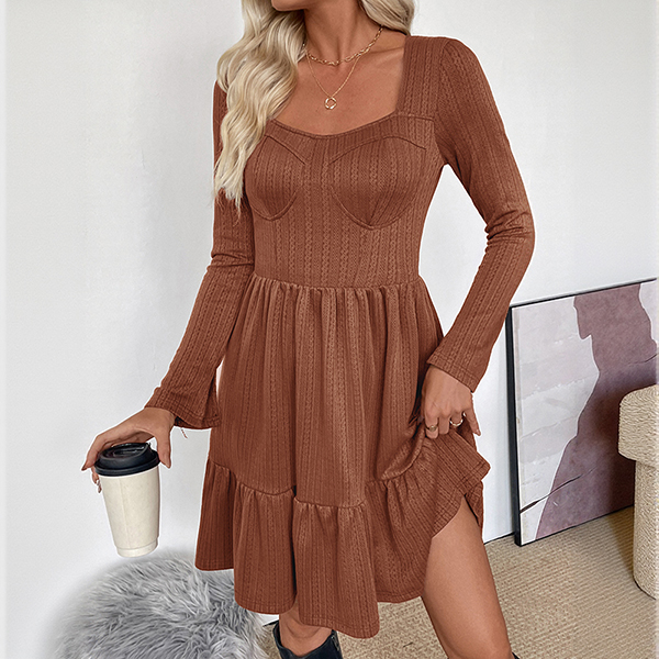 This timeless dress captures vintage elegance through classic silhouette and sophisticated neckline styling. The distinctive square neckline creates structured feminine appeal with retro charm, while the A-line cut provides universally flattering proportions that flow gracefully from waist to hem. Hope you like it.