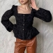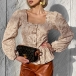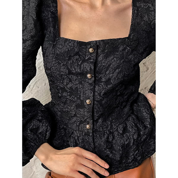 Vintage Square Neck Puff Long Sleeve Jacquard Blouse
