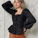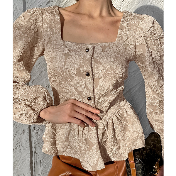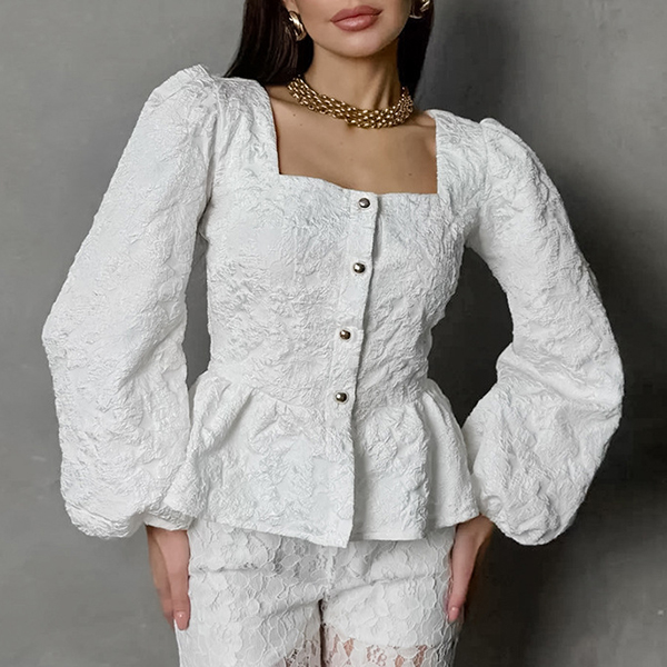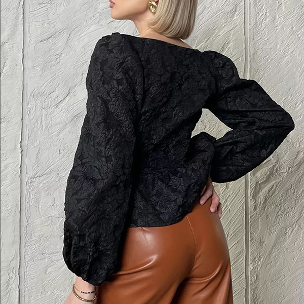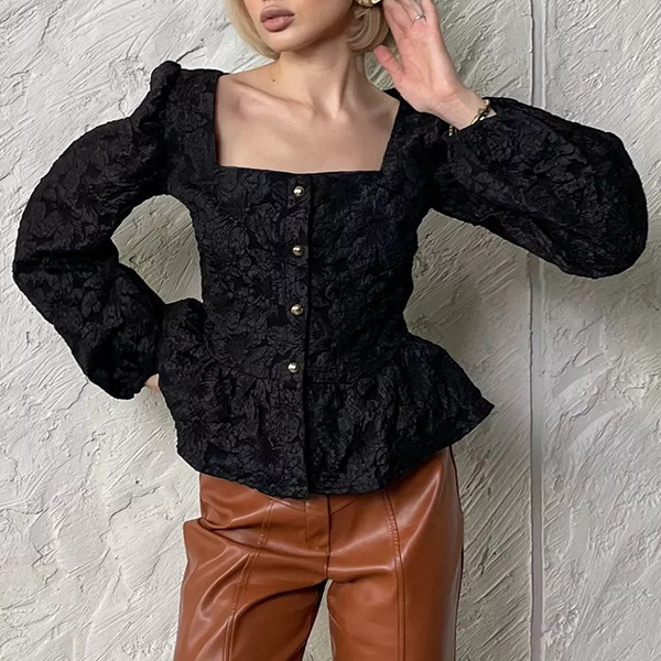 This elegant blouse features romantic square neckline with dramatic puff sleeves and intricate jacquard pattern for timeless vintage sophistication. Perfect for professional occasions, vintage-inspired styling, or sophisticated casual wear. Pair with high-waisted trousers and heels for professional vintage elegance. Or style with midi skirts and ankle boots for contemporary sophistication.