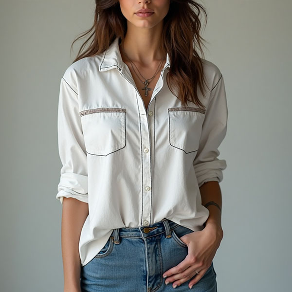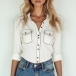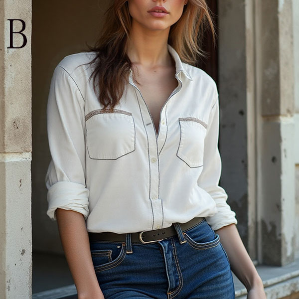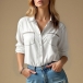 This blouse is perfect for adding a touch of sophistication and grace to your wardrobe. Pair it with tailored pants or a skirt for a polished and elegant look, or style it with jeans and heels for a more casual yet chic ensemble.