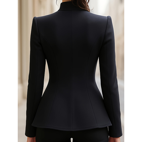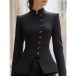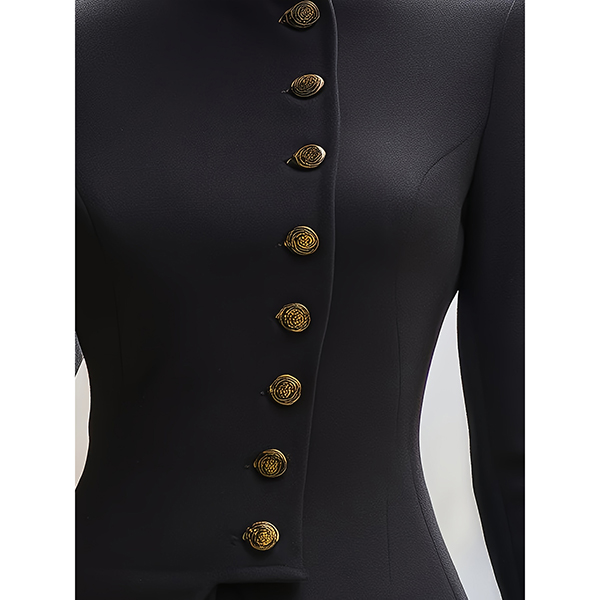 This distinctive jacket features vintage-inspired stand collar with contemporary irregular hemline for unique sophistication. The front button closure brings classic tailoring whilst the irregular cut creates modern asymmetrical appeal and artistic edge. Perfect for creative occasions, artistic events, or fashion-forward casual wear.