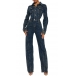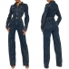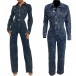 Vintage Stand Collar Long Sleeve Front Button Straight-cut Old-washed Denim Jumpsuit