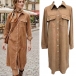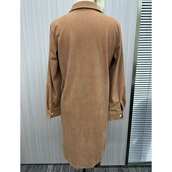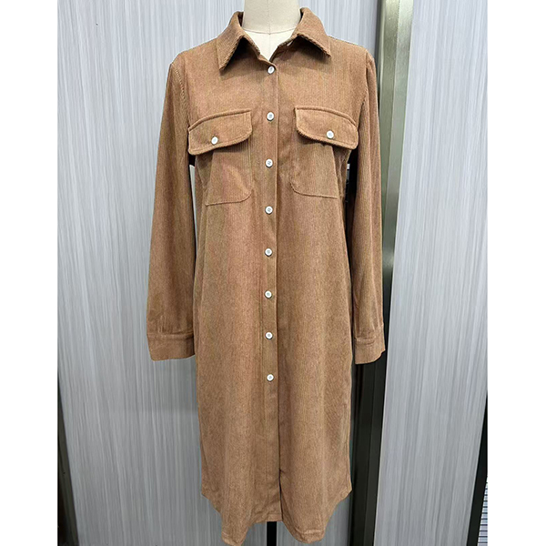 Vintage Stand Collar Long Sleeve Patch Chest Pockets Corduroy Shirt Dress