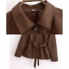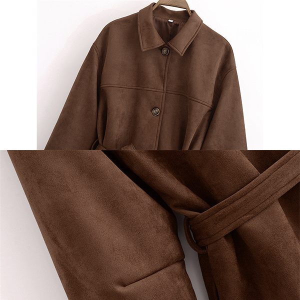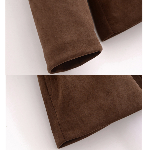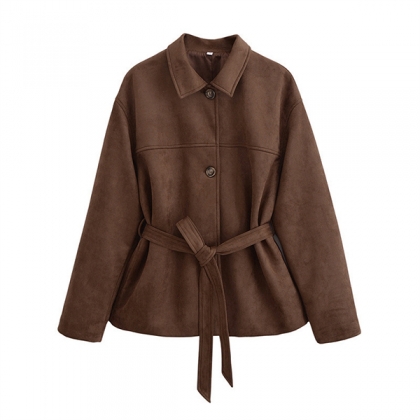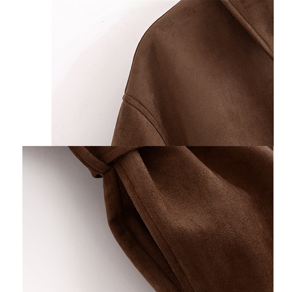 Vintage Stand Collar Long Sleeve Self-tie Artificial Suede Jacket