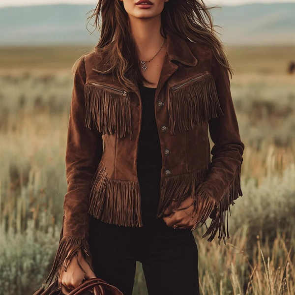 This distinctive jacket combines retro elegance with playful movement details. The tassel details add dynamic movement and textural interest, creating eye-catching focal points that enhance the vintage aesthetic. The long sleeves provide coverage while maintaining the jacket's refined silhouette. The cropped length pairs beautifully with high-waisted bottoms, while the tassels bring personality and flair. Style it over dresses for layered sophistication, or pair with separates for eclectic appeal.
