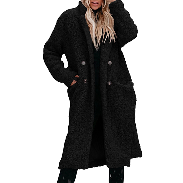 Vintage Stand Collar Notch Lapel Long Sleeve Double-breasted Sherpa Coat