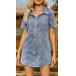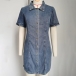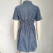 This is a stylish and nostalgic denim derss that combines vintage-inspired design with a modern twist. Features old-washed design, front button closure, short sleeve, it is classis can chic! The cinch waist detailing adds definition and shape to the dress. Pair this dress with sandals or sneakers for a casual and laid-back look.