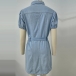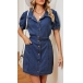 Vintage Stand Collar Short Sleeve Denim Dress with Belt