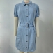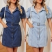 Crafted with high-quality denim fabric, this dress offers both comfort and durability. The stand collar adds a sophisticated and polished touch, elevating the overall aesthetic of the dress. The included belt cinches at the waist, creating a defined and flattering silhouette.Stay stylish, chic, and effortlessly fashionable with this must-have piece for any fashion enthusiast.