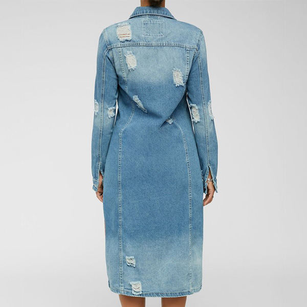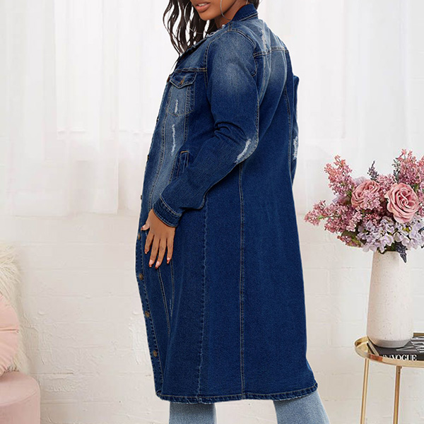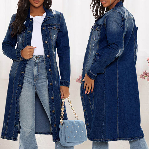 Vintage Street Fashion Old-washed Distressed Longline Denim Jacket