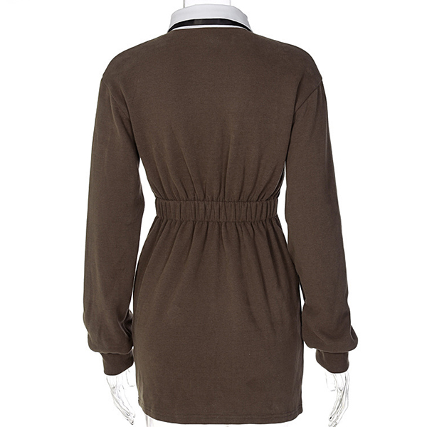 Vintage Style Contrast Color Stand Collar Long Sleeve Fake-two-piece Dress