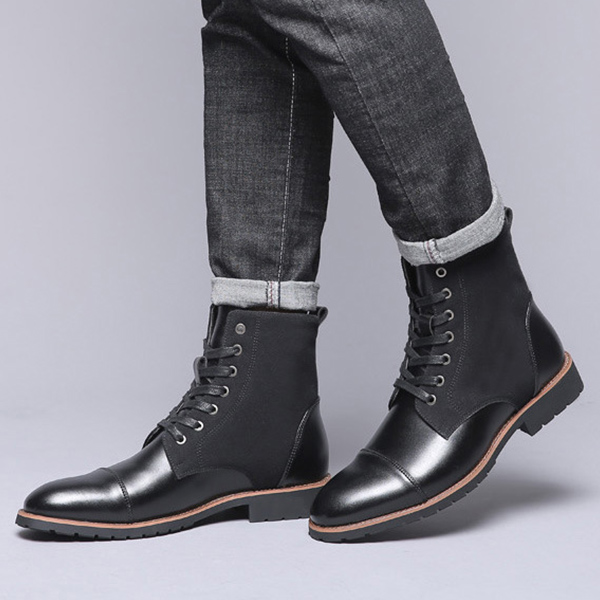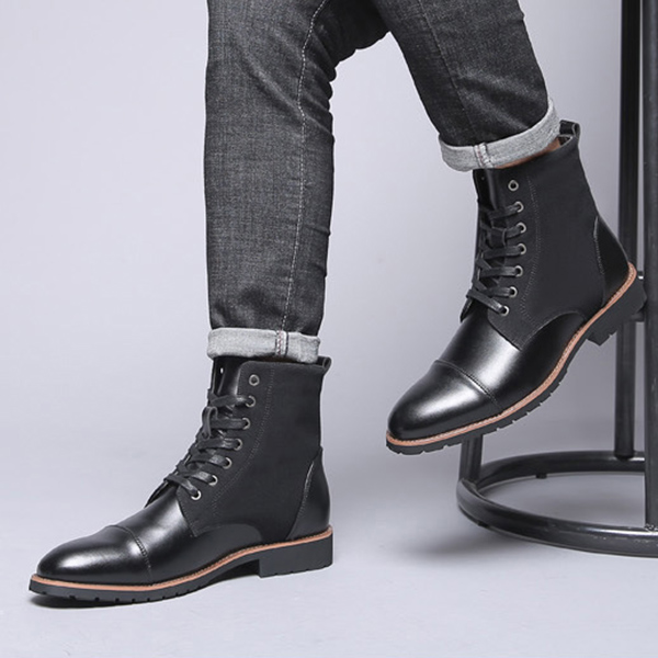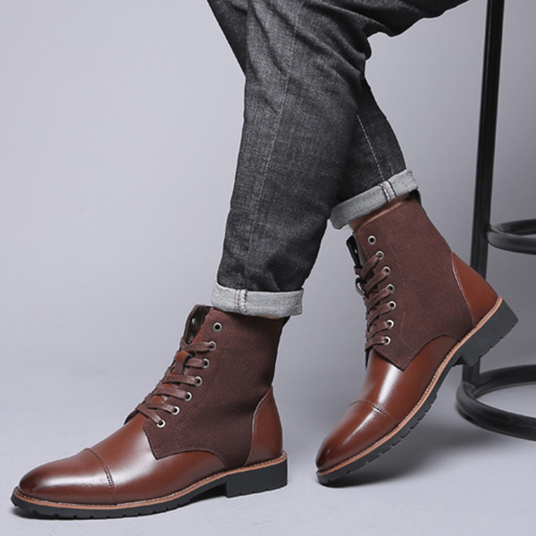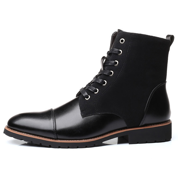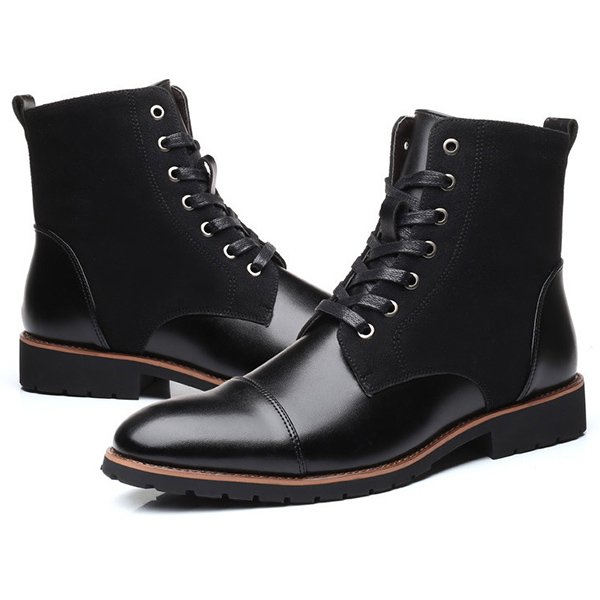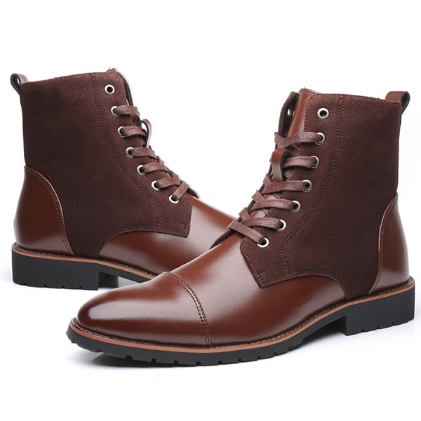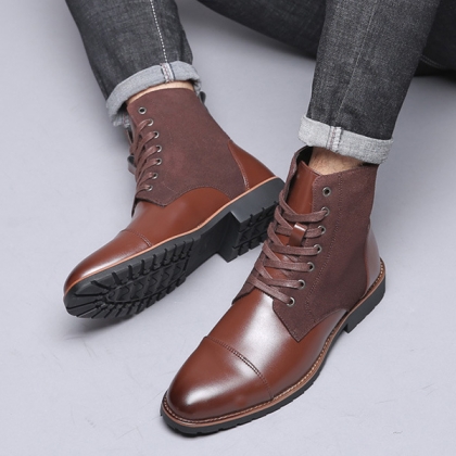 Vintage Suede Spliced Artificial Leather Lace-up Square Heeled Ankle Boots for Men