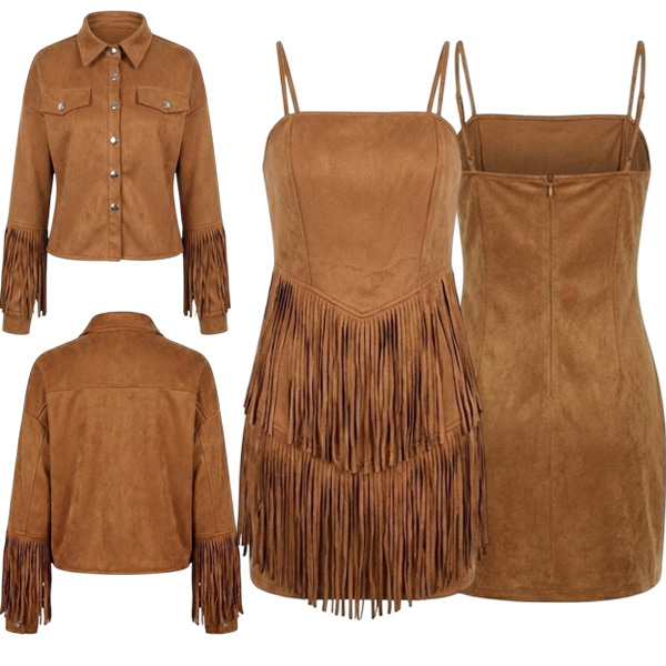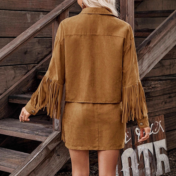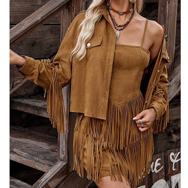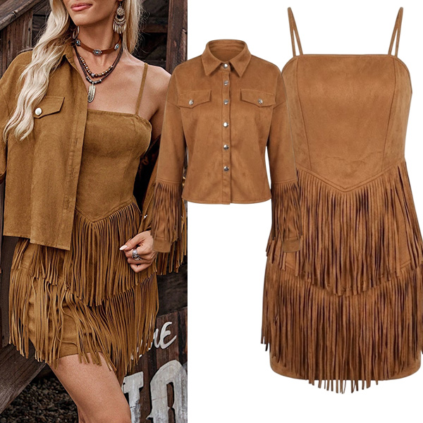 Vintage Tassel Two-piece Set Consist of Jacket and Slip Dress