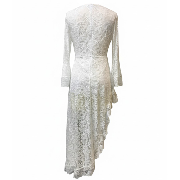 Vintage V-neck Long Sleeve Irregular Hemline Semi-through Lace Dress