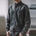 Vintage Vertical Striped Stand Collar Long Sleeve Patch Chest Pockets Denim Blouse for Men