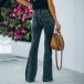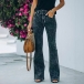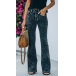 High-rise, 5-pocket jeans in slightly stretchy cotton denim. Zip fly with button and wide, flared hems. Perfect fit for matching with different style tops.