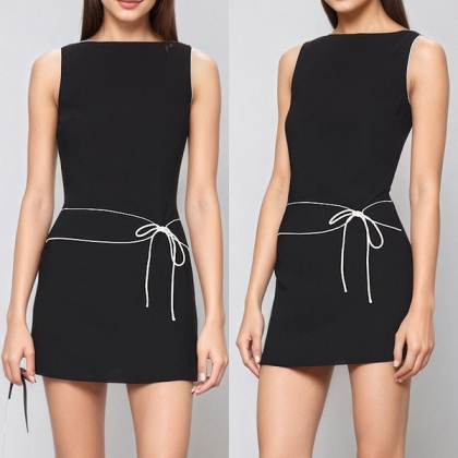 Waist-Hugging Solid Color Sleeveless Short Skirt