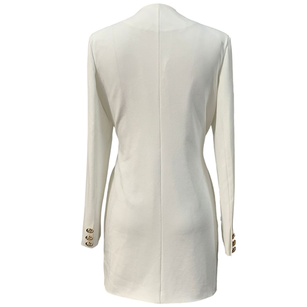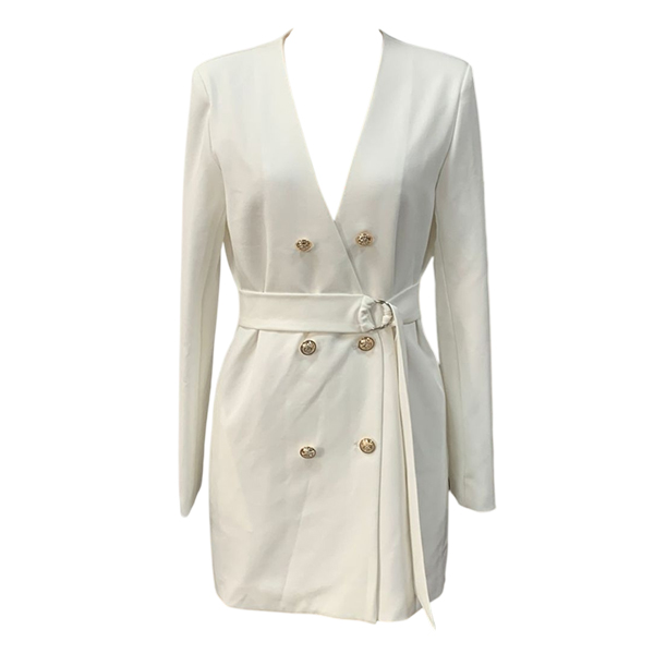 This White Dress is a sophisticated and stylish piece that exudes elegance and refinement. The V-neckline offers a flattering and classic neckline that adds a touch of allure and sophistication to the dress, creating a chic and polished aesthetic. The double-breasted design adds a structured and tailored element to the dress, creating a sophisticated and timeless look that is perfect for adding a touch of sophistication to your outfit. The self-tie waist detail adds a feminine and figure-flattering touch, allowing you to cinch in the waist for a customized and flattering fit. Pair it with heels and statement jewelry for a formal event or special occasion, or wear it with flats or boots for a more casual yet chic ensemble.