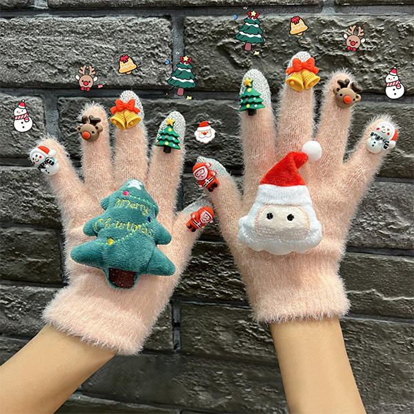 Warm Christmas Touchscreen Gloves for Women – Winter Plush Mittens